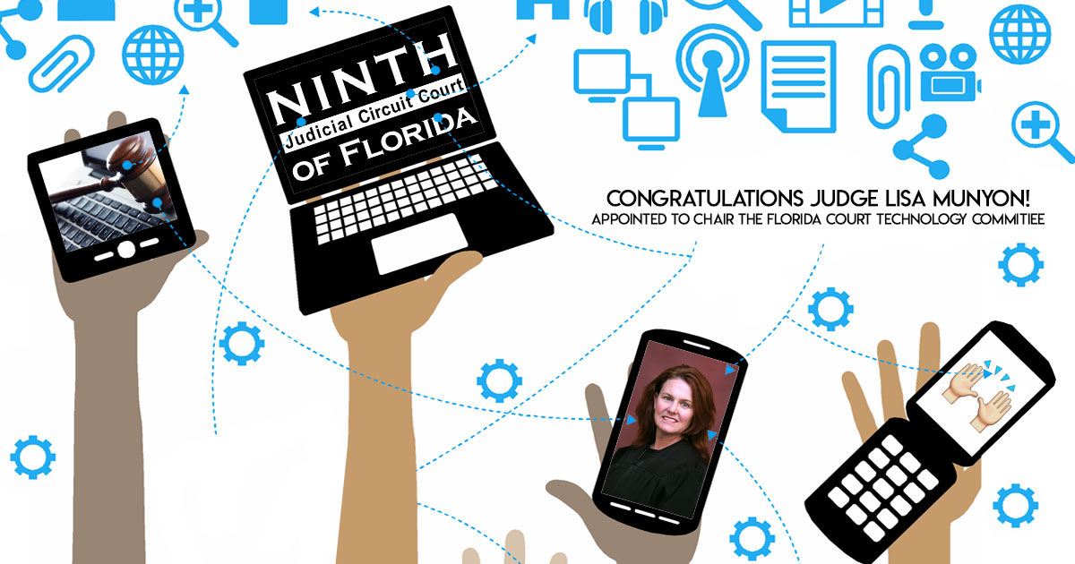 Judge Lisa T. Munyon was reappointed Chair of the Florida Court Technology Commission (FCTC) through June 30, 2020. Tasked with managing and directing the use of technology within Florida’s judicial branch, the FCTC was re-established in 2010 by Florida Supreme Court administrative order. Judge Munyon has chaired the Commission since mid-2012.